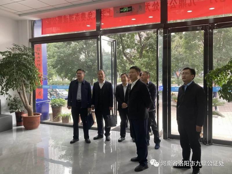 10月25日上午,河南省司法厅二级巡视员孙守汉、省司法厅公共法律服务局副局长王芳、王奕森、二级调研员孙建一行莅临九鼎公证处调研指导工作,洛阳市司法局党组成员、副局长张小锋和公证仲裁管理科副科长蒋成康陪同。